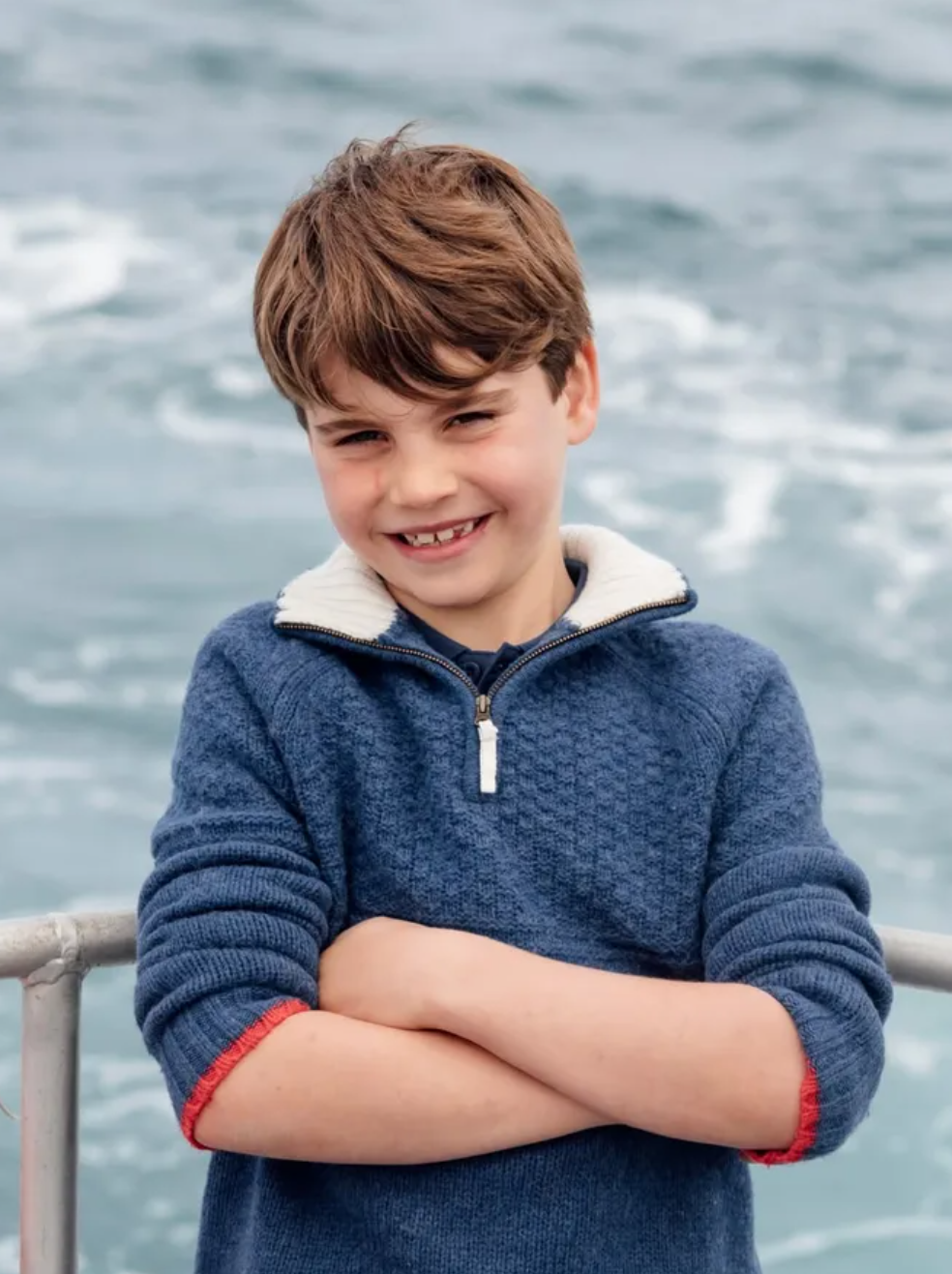 Снимок был сделан во время семейного отдыха в Корнуолле в начале этого месяца Мэттом Портеусом — доверенным фотографом королевской семьи. Самый непоседливый из детей четы Уэльских позировал на лодке. За его спиной виднелось море. На Луи был синий теплый свитер с меховым воротником. Мальчик широко улыбался, скрестив руки на груди. «С днем рождения, Луи! Сегодня тебе восемь», — обратились к имениннику родители, добавив эмодзи в виде красного воздушного шарика.
